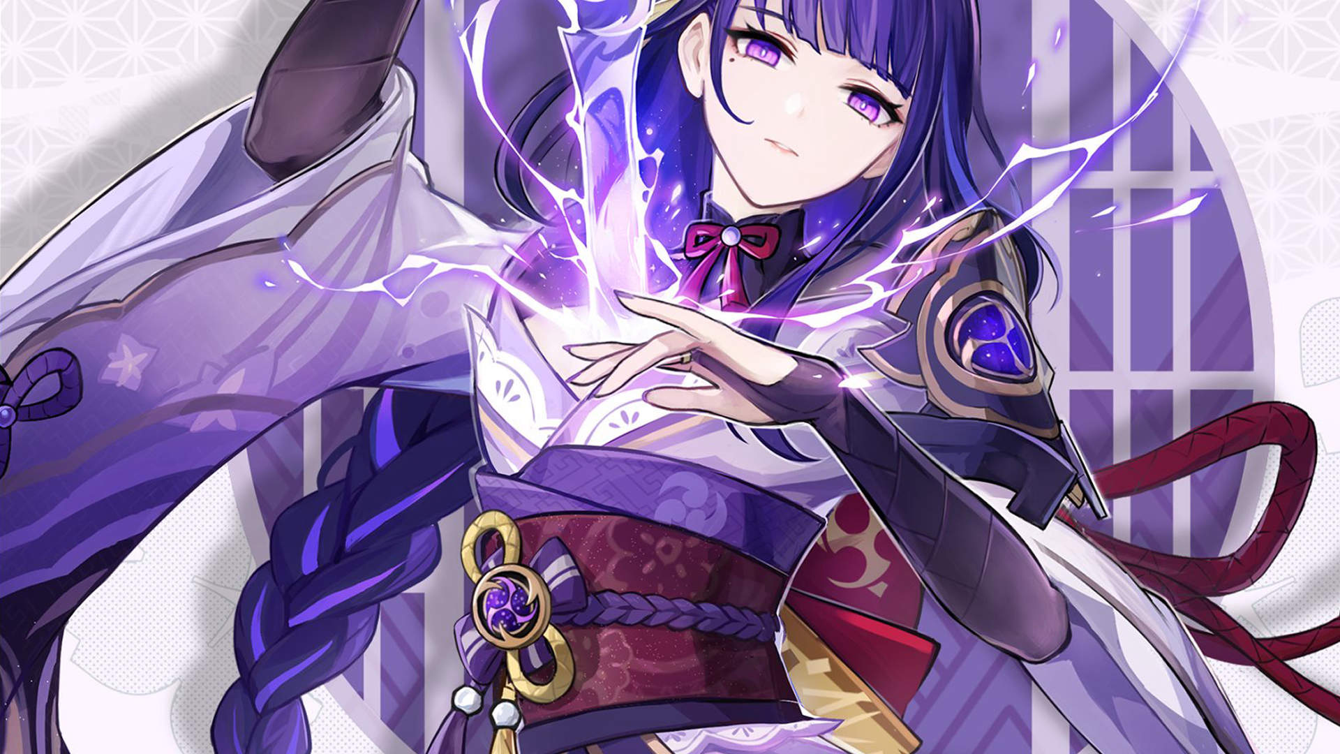 Wallpaper Raiden Shogun dengan Electro Power (Image source: wallpapercave.com)