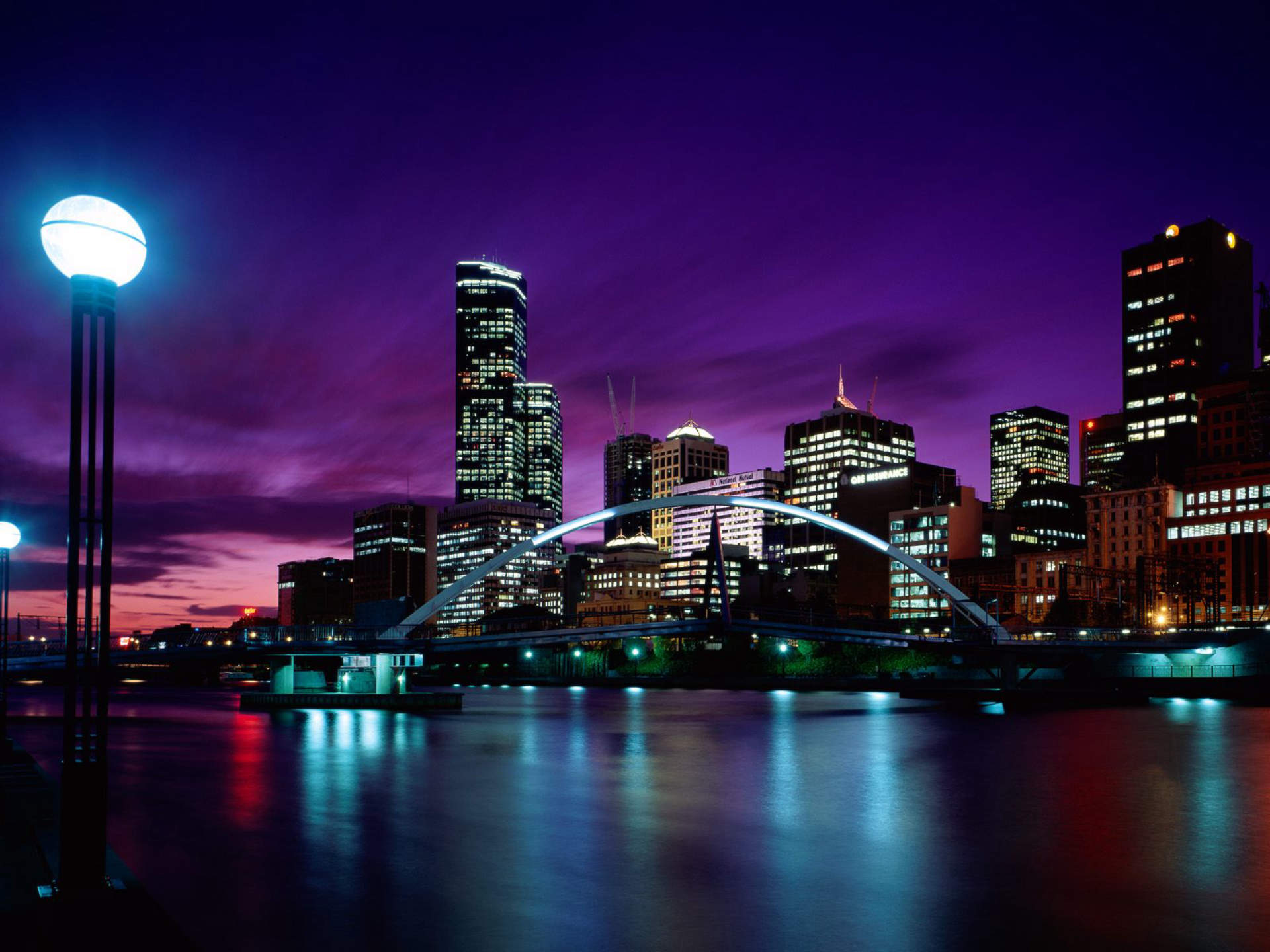 Wallpaper Jembatan Kota dengan Latar Sunset