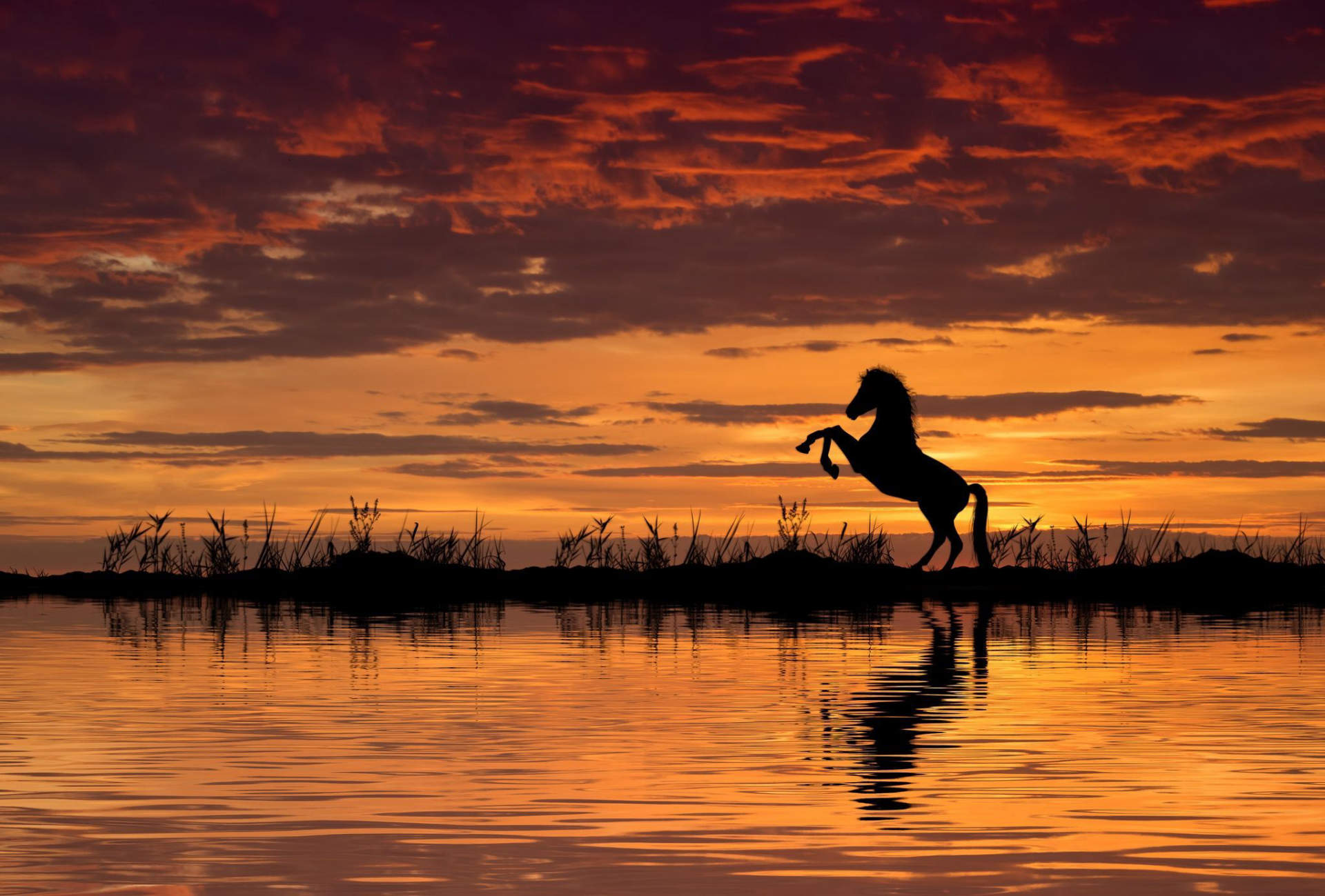 Wallpaper kuda dengan latar belakang matahari terbenam menghadirkan nuansa keindahan dan kedamaian. Siluet kuda yang gagah berpadu dengan semburat jingga dan merah matahari terbenam menciptakan pemandangan yang dramatis dan menginspirasi. Wallpaper ini cocok untuk mereka yang mengagumi keindahan alam dan kekuatan seekor kuda.