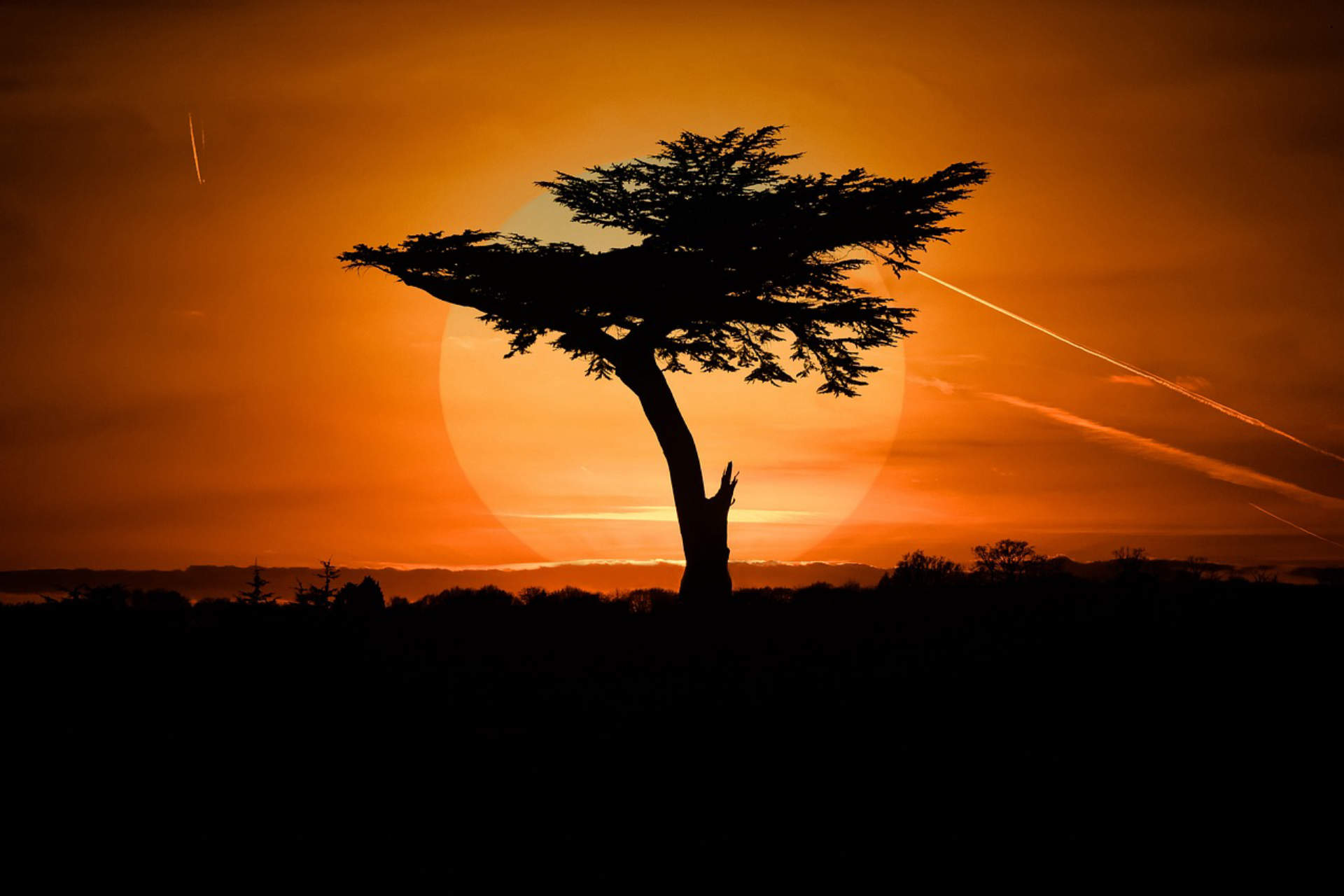 Wallpaper Singa dengan Latar Matahari Terbenam